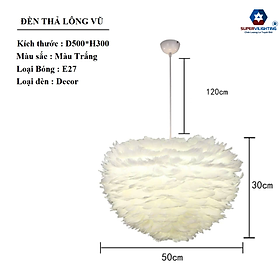 Đèn thả trần trang trí lông vũ SuperVilighting phòng khách phòng ngủ màu trắng hiện đại bảo hành 24 tháng