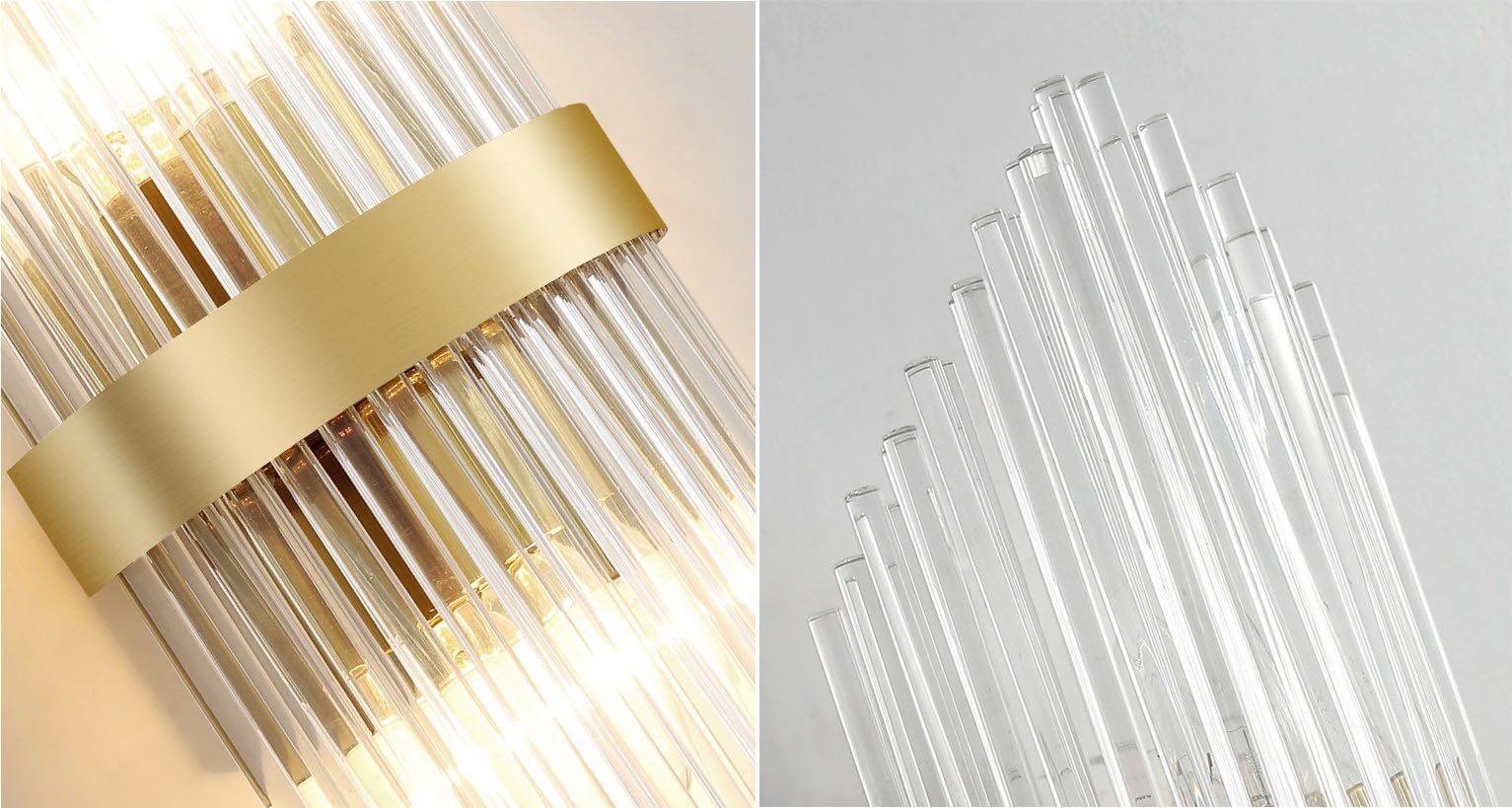 Đèn tường pha lê là loại đèn được thiết kế rất tinh xảo với sự kết nối hài hoà giữa các thanh pha lê với nhau và sự phản chiếu ánh sáng của đèn led
