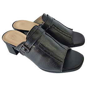 - Dép nữ cao gót quai ngang một bản TRường Hải màu đen gót vuông 8cm da mềm DN139 thiết kế với kiểu dáng ôm chân, thon gọn, thoải mái di chuyển mà không lo