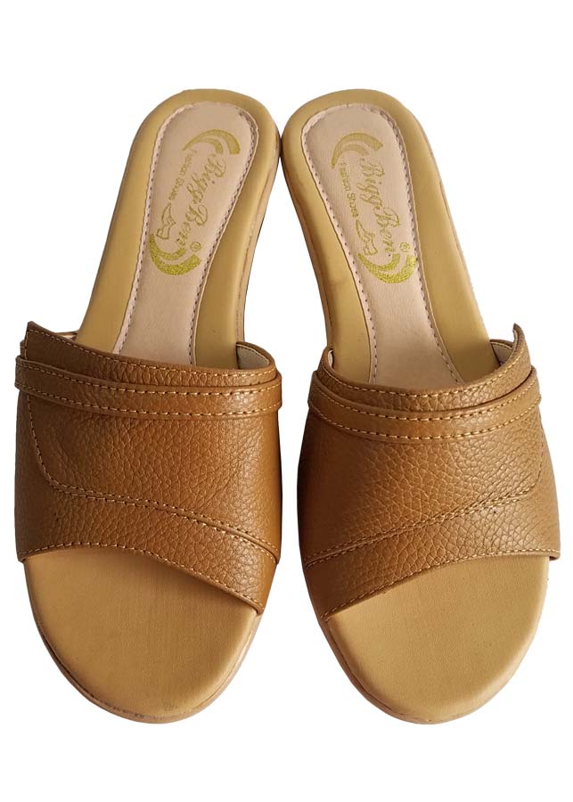 Dép nữ đế xuồng 5cm da bò thật