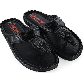 • Tên sản phẩm: Dép nam Huy Hoàng đầu cá sấu màu đen HT7237