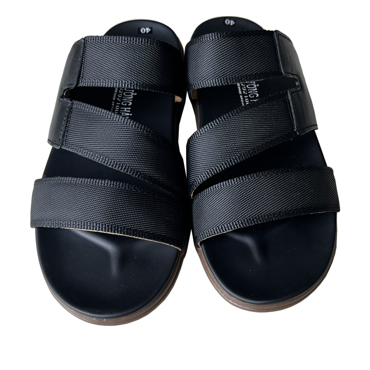 ✨Dép nam quai chéo Trường Hải quai dù phối da bò đế cao 2.5cm màu đen QC200