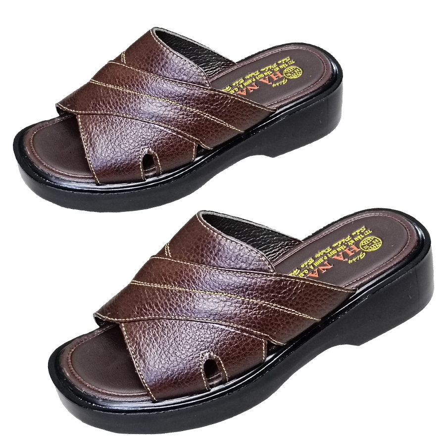 Dép Nam Quai Ngang Da Bò Thật HÀ NAM Đế Cao Dành Cho Người Thấp DN2042