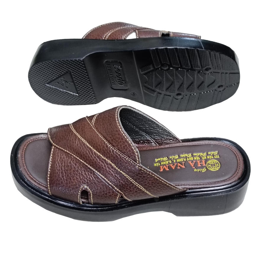 DÉP NAM DA BÒ CAO CẤP - THƯƠNG HIỆU HÀ NAM - Da bò thật, bền đẹp: Dép nam được làm từ 100% da bò thật, mềm mại, thoáng khí, đảm bảo độ bền cao