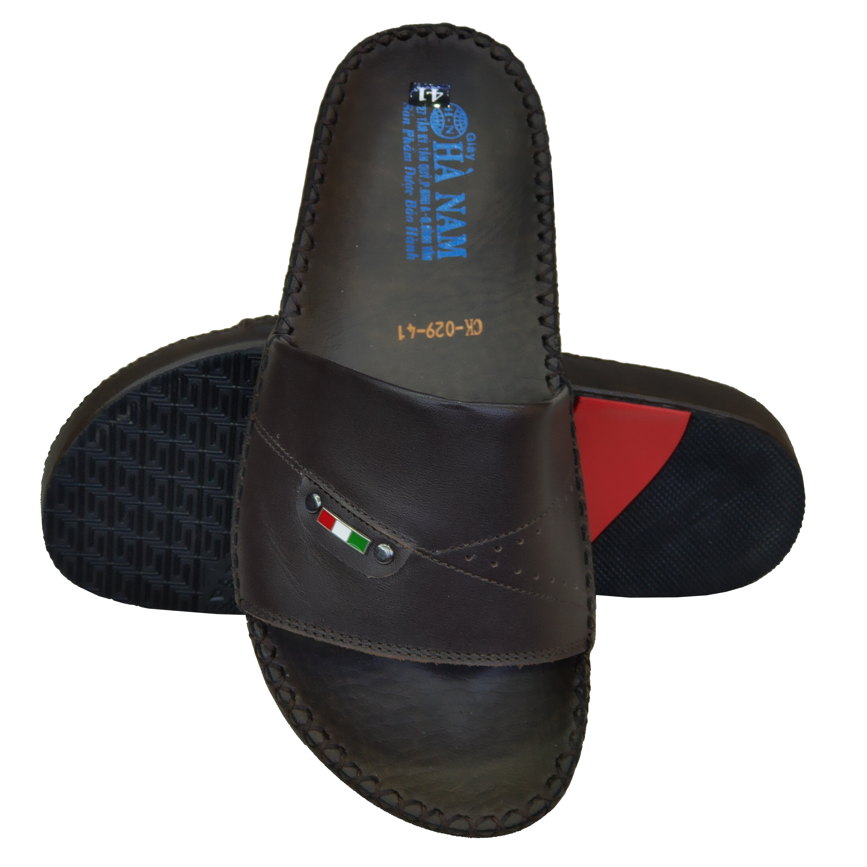 Dép lê chữ H, dép quai ngang da thật cỡ lớn 45 46 47 48 cho nam chân to. Big size leather slippers.