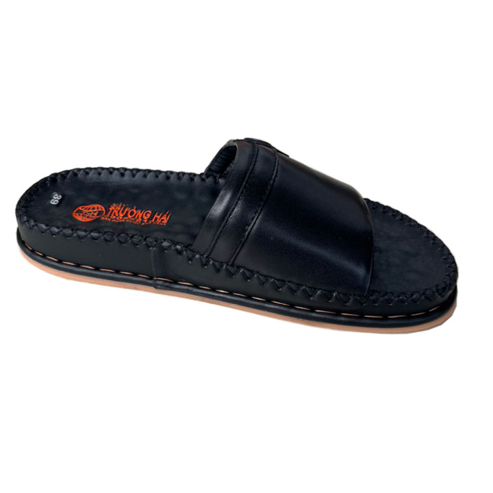 Dép nam quai ngang một bản cao 3.5cm chính hãng Trường Hải da bò thật màu đen QN178