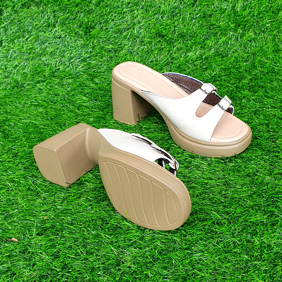 ✨Dép nữ cao gót 8cm Trường Hải da bò mềm mại màu kem CG145