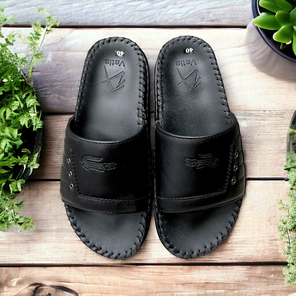 Dép Da Nam - Lịch Lãm & Thoải Mái Mỗi Ngày - Chất liệu cao cấp: Sử dụng da tổng hợp chất lượng, mềm mại, bền bỉ theo thời gian, mang lại cảm giác êm ái và thoáng khí cho bàn chân. - Thiết kế sang trọng: Tông màu đen lịch lãm, kết hợp với đường chỉ may tinh tế và logo kim loại nổi bật – tôn lên vẻ nam tính, trưởng thành. - Đế chống trượt: Đế EVA siêu nhẹ, độ đàn hồi tốt, kết hợp vân đế tăng độ ma sát – an toàn khi di chuyển trên nhiều bề mặt. - Form ôm chân: Thiết kế bản quai ngang rộng, ôm gọn bàn chân nhưng không gây bí bách, dễ xỏ vào – thích hợp cho người trung niên và người lớn tuổi. - Ứng dụng đa năng: Phù hợp sử dụng trong nhà, đi dạo phố, đến văn phòng hoặc các dịp gặp gỡ thân mật. Lựa chọn tuyệt vời cho quý ông yêu thích sự thoải mái, đơn giản nhưng vẫn giữ được nét tinh tế trong từng bước chân.