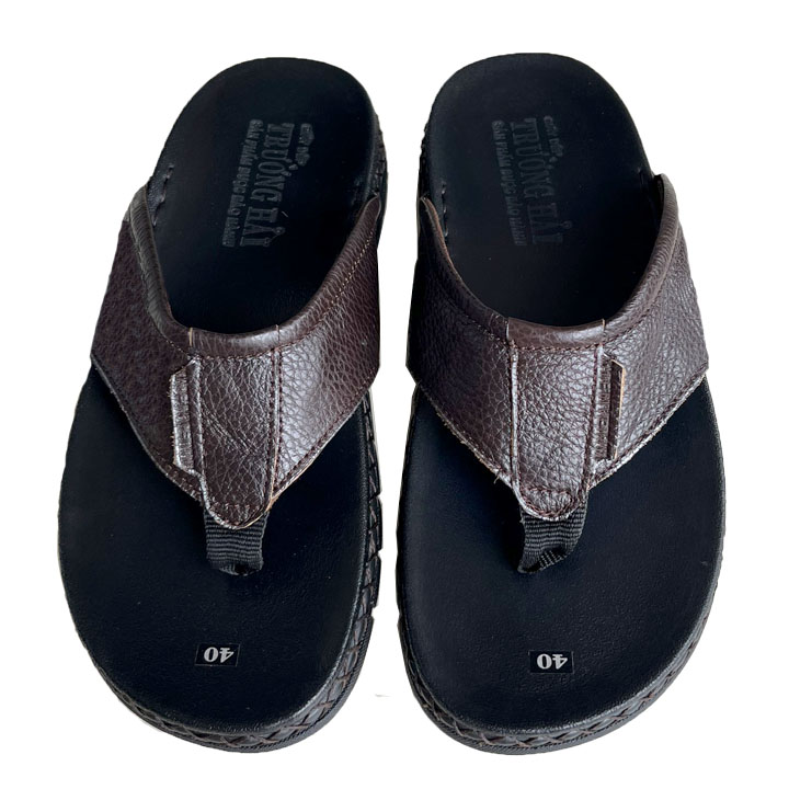 Dép nam xỏ ngón đế âm da bò thật Trường Hải