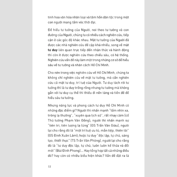 Trong quá trình nghiên cứu và trình bày những vấn đề đó, tác giả không chỉ làm rõ về phẩm chất tư duy Hồ Chí Minh mà còn qua đó làm rõ thêm lý luận về tư duy, nhất là góc độ năng lực và phong cách tư duy của vị lãnh tụ cách mạng này.