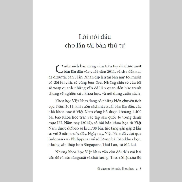 Riêng với cuốn sách này, hy vọng nó sẽ giúp ích cho những người mới bước vào nghiên cứu khoa học, đặc biệt là với các bạn sinh viên, qua việc cung cấp những thông tin, những kiến thức phổ thông cần phải có để làm hành trang trên con đường nghiên cứu khoa học - con đường vốn không ít cam go, thử thách mà cũng rất đáng tự hào.