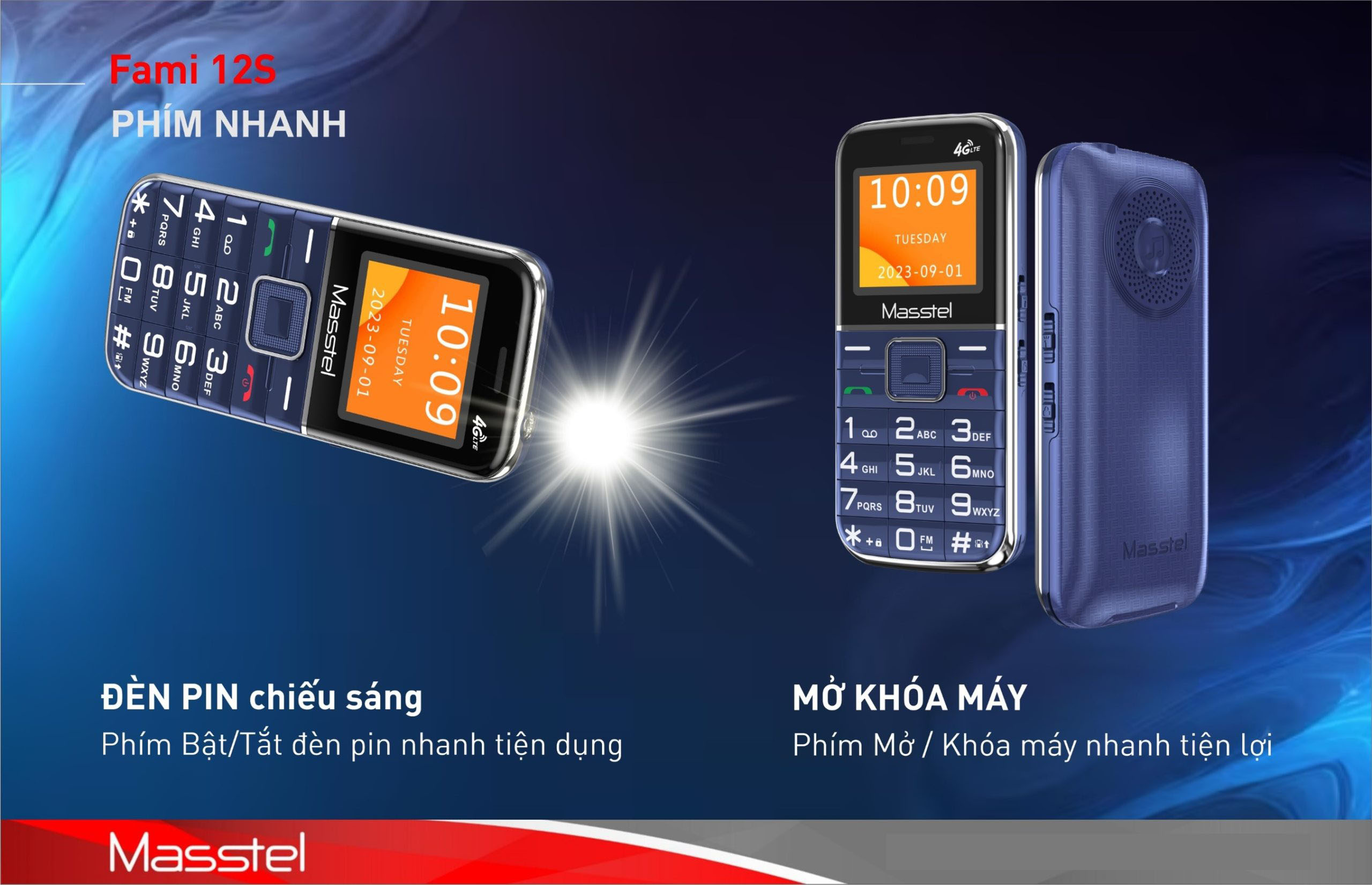 ✨Điện thoại người già Masstel Fami 12S 4G(LTE) , Bàn phím chữ số to, Loa lớn , Máy viền thép chắc chắn - Hàng chính hãng
