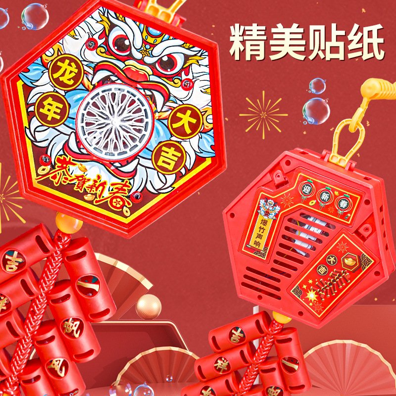 Đồ chơi Tết máy tạo bong bóng có loa và đèn led, tạo âm thanh giống tiếng bắn pháo hoa.