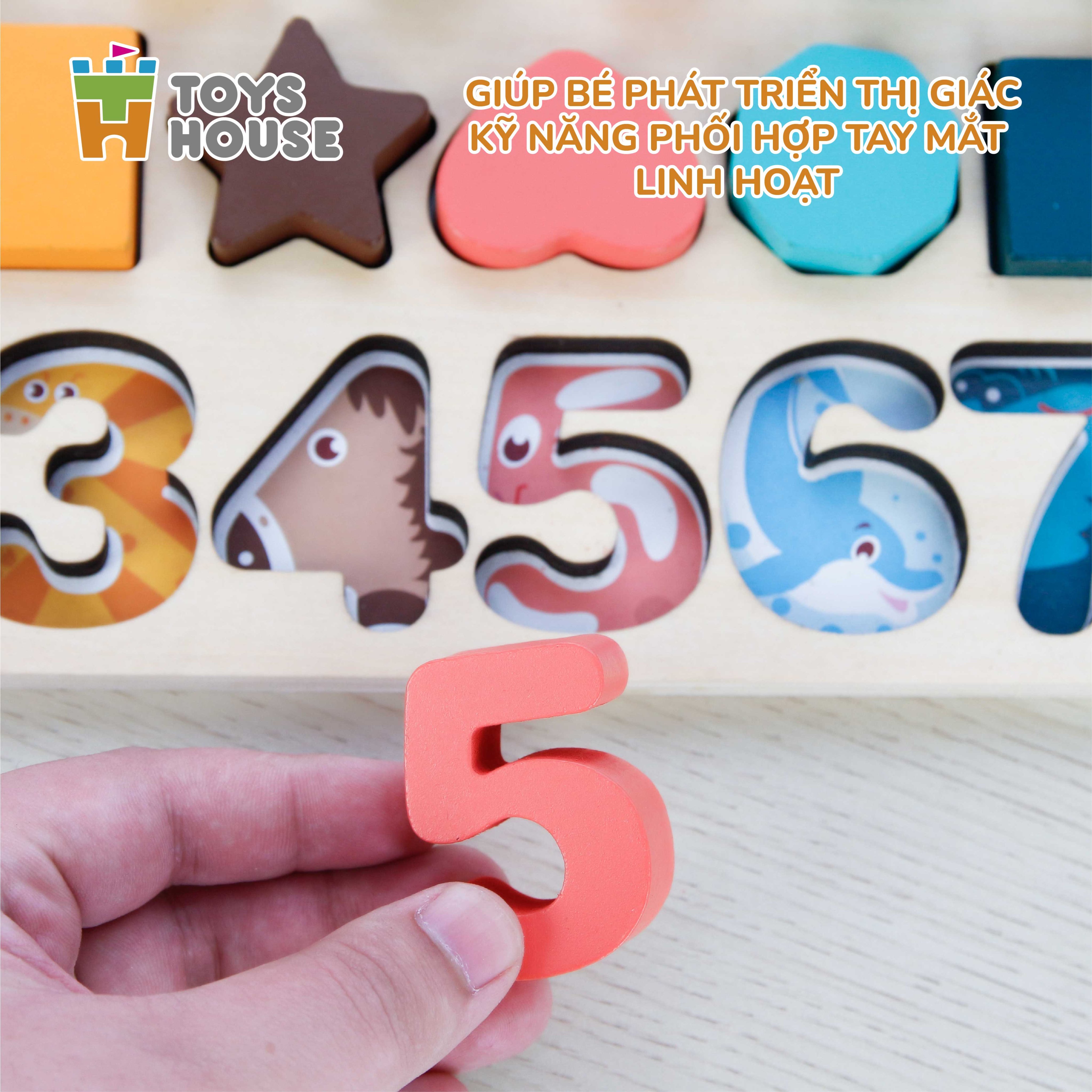 Đồ chơi gỗ lắp ghép Toyshouse 574 cho bé, bảng học chữ số, hình khối và tập đếm giáo dục sớm cho trẻ Đồ chơi ghép số 3D thông minh Toys House sẽ là một