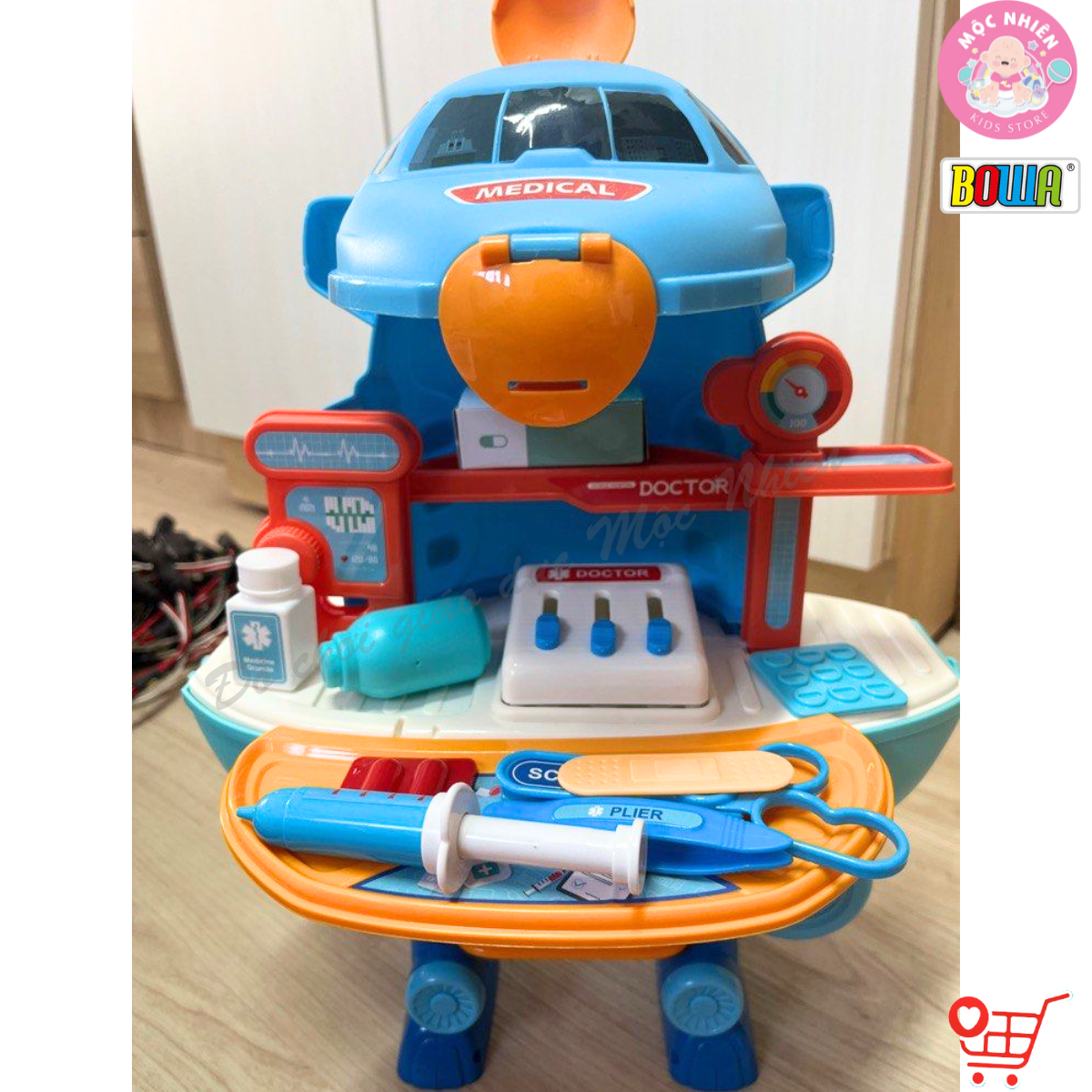 Mua tại TiktokĐồ Chơi Hướng Nghiệp Nhập Vai BOWA 8095 - Máy Bay Y Tế 2 trong 1 (26 Chi Tiết) Bộ sản phẩm BOWA 8095 – Máy bay y tế 2in1 với 26 món gồm các bộ sản phẩm bác sỹ/ y tá mô phỏng đa dạng như k.i.m t.i.ê.m, đèn pin, máy đo nhịp tim, nhiệt kế… nằm trong chiếc máy bay mô hình có bánh xe đẩy được. Ngoài ra, sau đó bé có thể dựng thành một bàn y tế nhỏ vô cùng tiện dụng, cho bé ngồi chơi và tập làm y tá, bác sỹ như ba mẹ vậy Đặc tính sản phẩm: