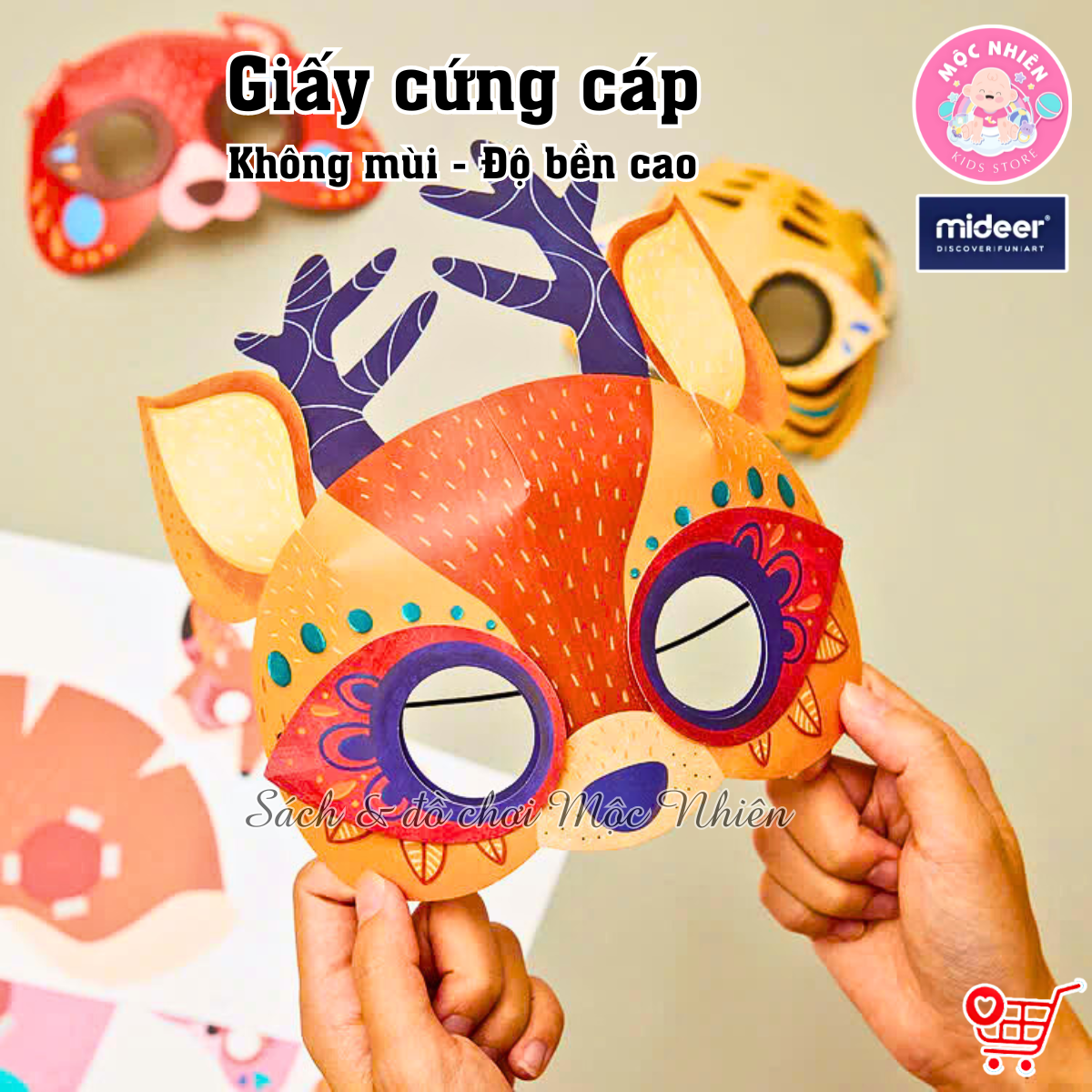 - 1 tấm sticker gồm các keo dính Đồ Chơi Stem Mặt Nạ Giấy Hình Động Vật 3D Animal Paper Masks Mideer