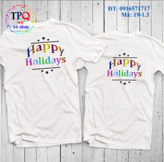 Đồ đi biển dành cho gia đình quần dừa áo in họa tiết Happy Holiday xinh xắn ( giá 1 bộ gồm 1 quần +1 áo) Gia đình bạn muốn lưu lại những khoảnh khắc