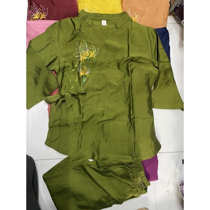 Mẫu pháp phục nữ - quần áo Phật tử đi chùa, đồ lam chất kate lụa mềm có co giãn Sen Hồng 0898553583
