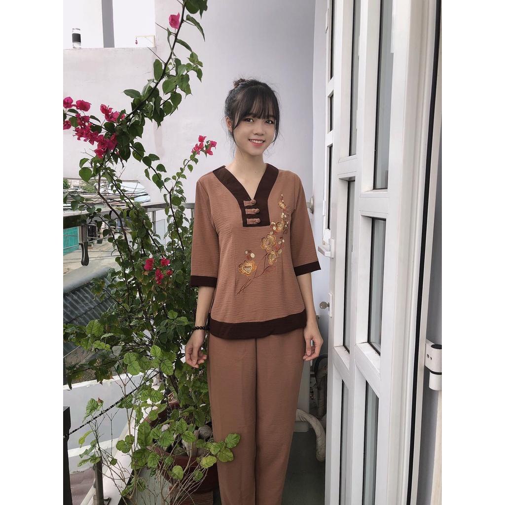 Đồ lam đi chùa đũi nhật thêu mềm mịn thanh lịch #shopcuamy #phapphuc #phapphucdichua #dolamdichuadep