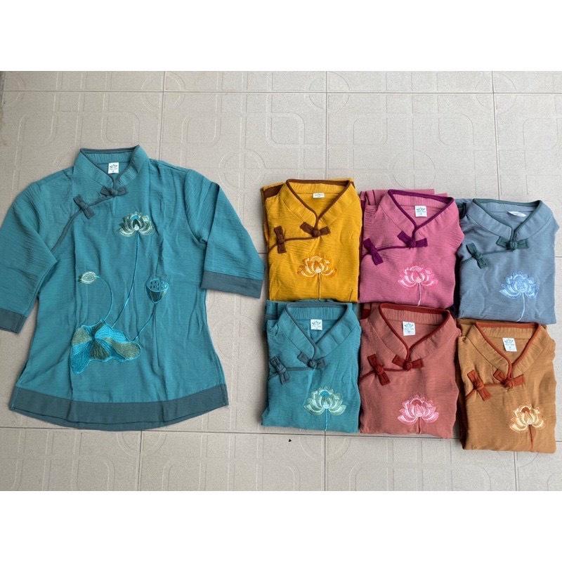 Đồ lam đi chùa đũi nhật thêu mềm mịn thanh lịch #shopcuamy #phapphuc #phapphucdichua #dolamdichuadep