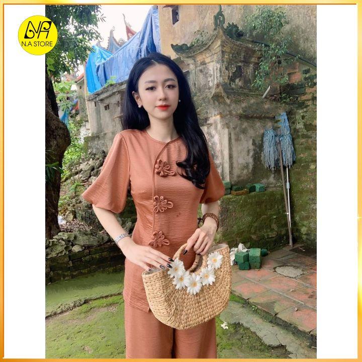 ✨Đồ Lam Đi Chùa Nữ - Bộ Đi Lễ Chùa Đẹp Cao Cấp Trang Nhã Vải Tuyết Nhung Nút Tàu Tay Phồng - AL027
