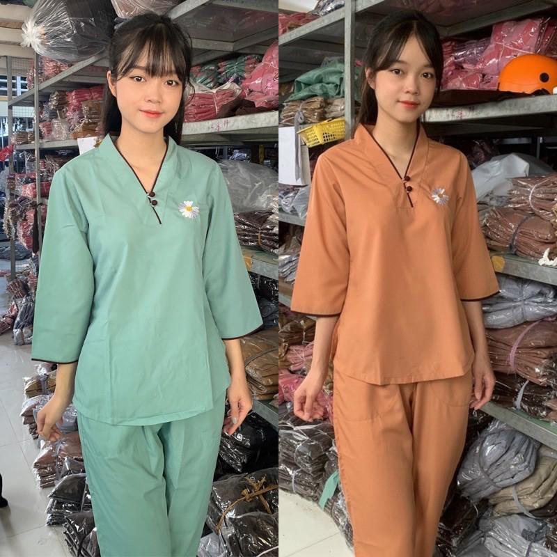 ✨Đồ Lam Đi Chùa # Tim 2Nút Vải Kate # Đồ Bộ # Quần Áo Nữ