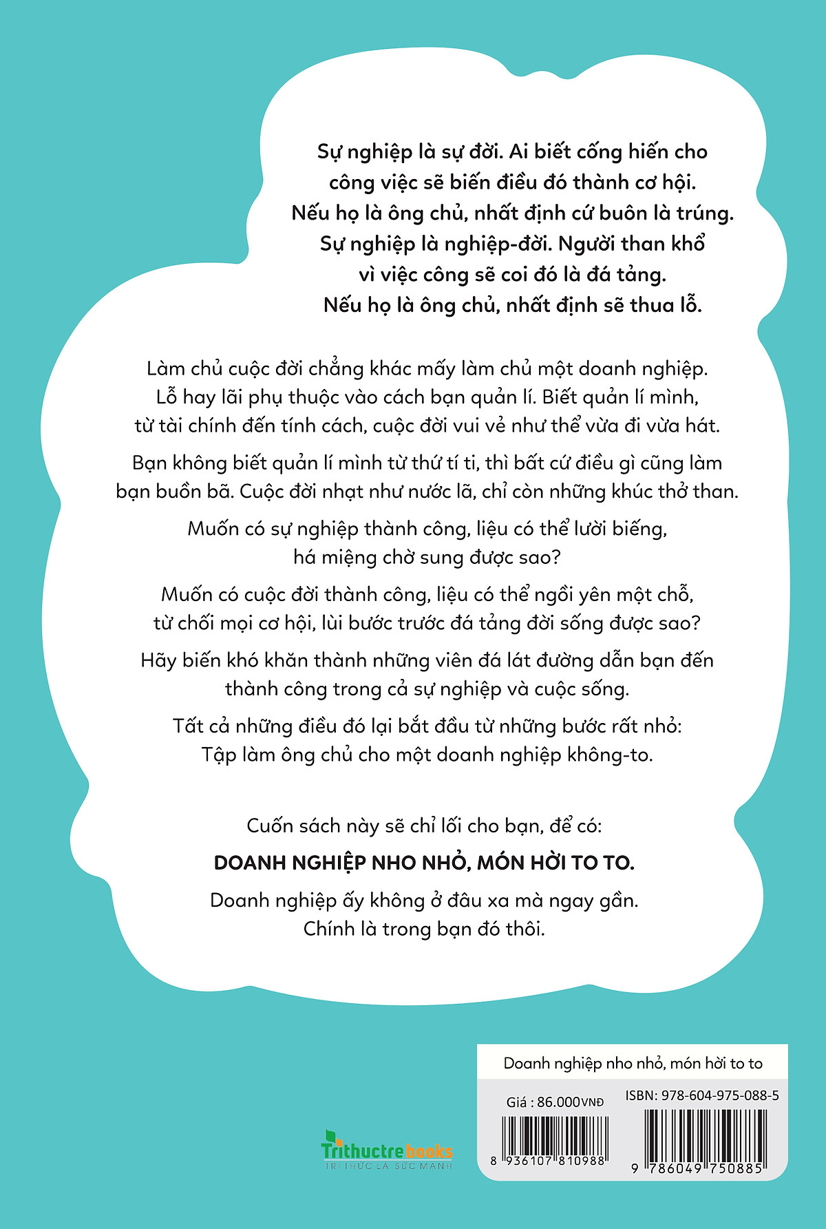 Cuốn sách này sẽ chỉ lối cho bạn để có: DOANH NGHIỆP NHO NHỎ, MÓN HỜI TO TO. Doanh nghiệp ấy không ở đâu xa mà ngay gần. Chính là trong bạn đó thôi."