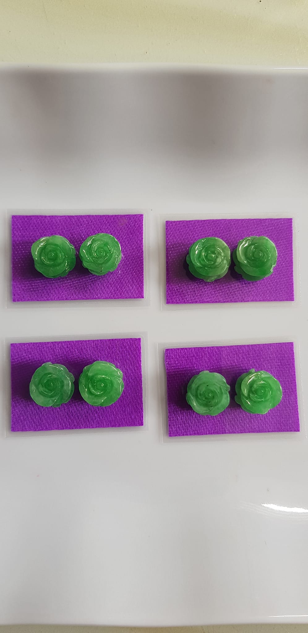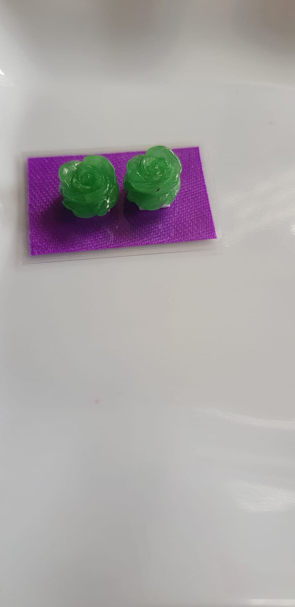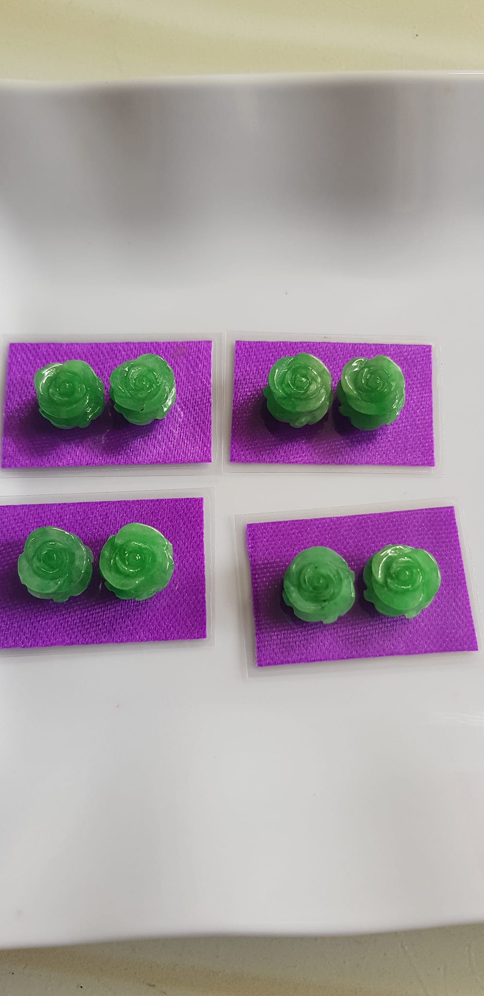 Đôi bông tai mới bông hồng nổi cao sịn đẹp xanh Ngọc tươi size đk 9,5mm x Cao 5mm Chất liệu đá ngọc cẩm thạch tự nhiên xanh ngọc tươi đều sịn bóng mượt đẹp