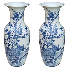 Mua tại TiktokĐôi lọ hoa cảnh tứ quý Chất liệu : sứ Loại men : rong cổ , trắng Cảnh : Chim trĩ, Công, Hạc, hoa Phù dung,Tùng, Chùa Size : 45cm, 50cm, 55cm Sản xuất tại : Bát Tràng, Hà Nội , Việt Nam