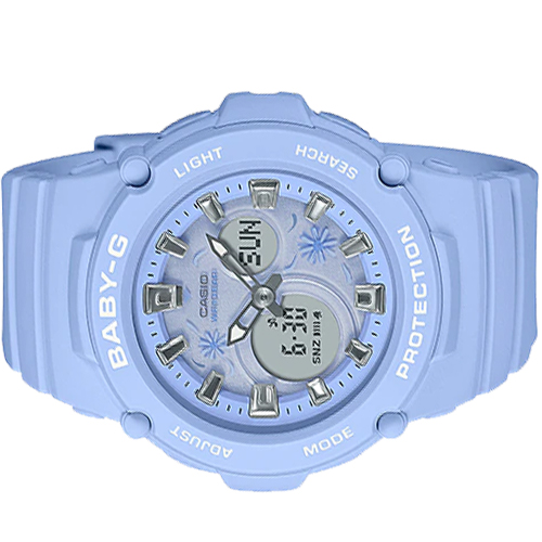 Thỏa mãn vị giác với mẫu đồng hồ BABY-G màu kẹo. Vỏ và dây đeo đẹp mắt phủ lớp hoàn thiện mờ kết hợp với đường gờ và vạch chỉ giờ bằng nhựa resin trong