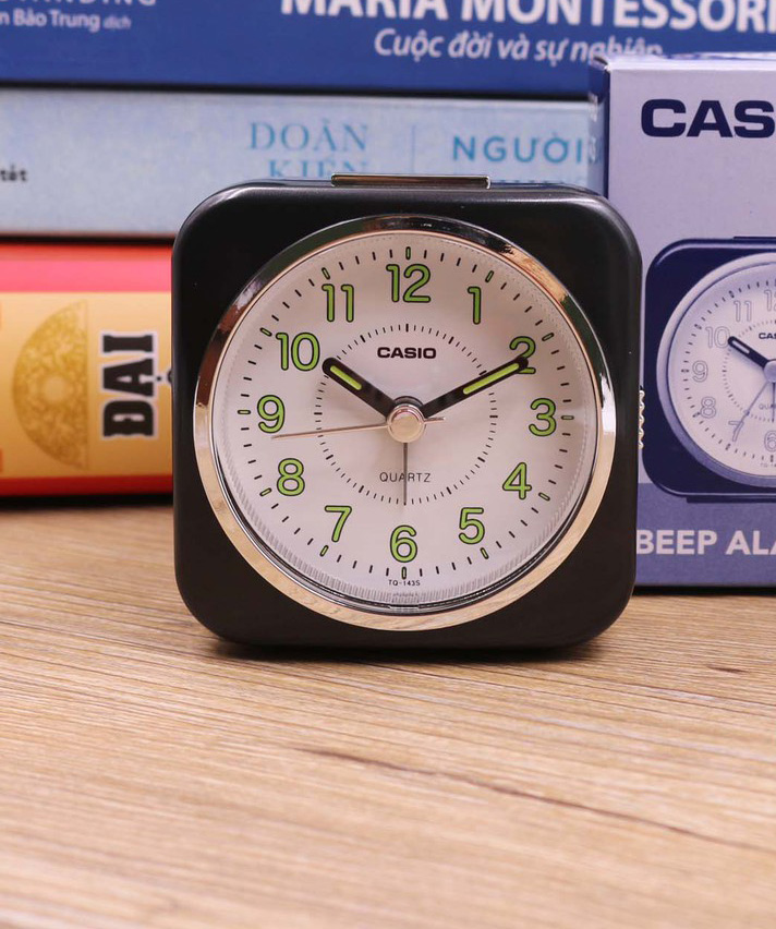 Đồng hồ báo thức du lịch - để bàn TQ-140-4DF có thiết kế đơn giản thanh lịch và nhỏ gọn hiện thị đầy đủ tính năng xem giờ, báo thức có dạ quang trên mặt