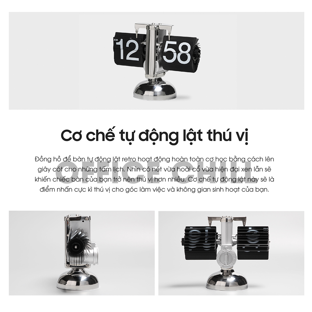 Đồng hồ để bàn với thiết kế lật số cơ học phong cách Vintage cổ điển cực kỳ sang trọng nhưng cũng không kém phần hiện đại. Sản phẩm không thể thiếu trên bàn làm