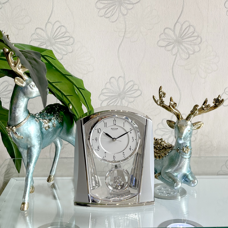 Mua tại TiktokĐồng hồ để bàn Nhật Bản Rhythm 4RP772WR19, dùng pin 2 PIN tiểu (AAx2), vỏ nhựa mạ crom/ màu bạc. Kích thước 17.8 x 21.3 x 7.6cm, trọng lượng 750g. quả lắc chậm , lắc nhịp nhàng êm ái. Máy chạy cực êm, chính xác, bền bỉ.