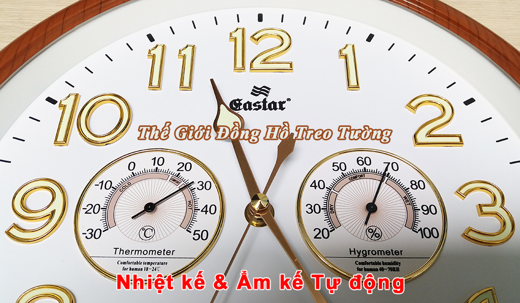 (*) Nhiệt ẩm kế tự động sử dụng nguyên lý co dãn của lò so kim loại dựa trên điều kiện thời tiết để hiển thị nhiệt độ và độ ẩm xung quanh nơi treo đồng hồ. Không nên sử dụng cho mục đích khác. Đây cũng không phải là dụng cụ nhiệt ẩm kế chuyên dụng. Mức sai số của Nhiệt kế là ± 2oC. Mức sai số của Ẩm kế là ± 10%.