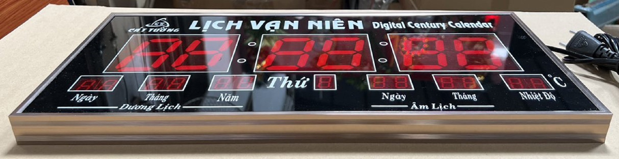 Đồng hồ treo tường Thông Tin Sản Phẩm Lịch Vạn Niên Cát Tường 3A sở hữu led điện tử sử dụng điện cùng kích thước nhỏ gọn đơn giản nhưng vẫn hiển thị đầy đủ