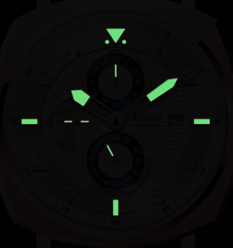 Đồng hồ nam chính hãng LOBINNI Thụy Sỹ Thiết kế sang trọng, đẳng cấp cho quý ông Thời gian trữ cót lâu lên đến 40h Chống nước 5ATM, Kính sapphire Toàn bộ máy được làm