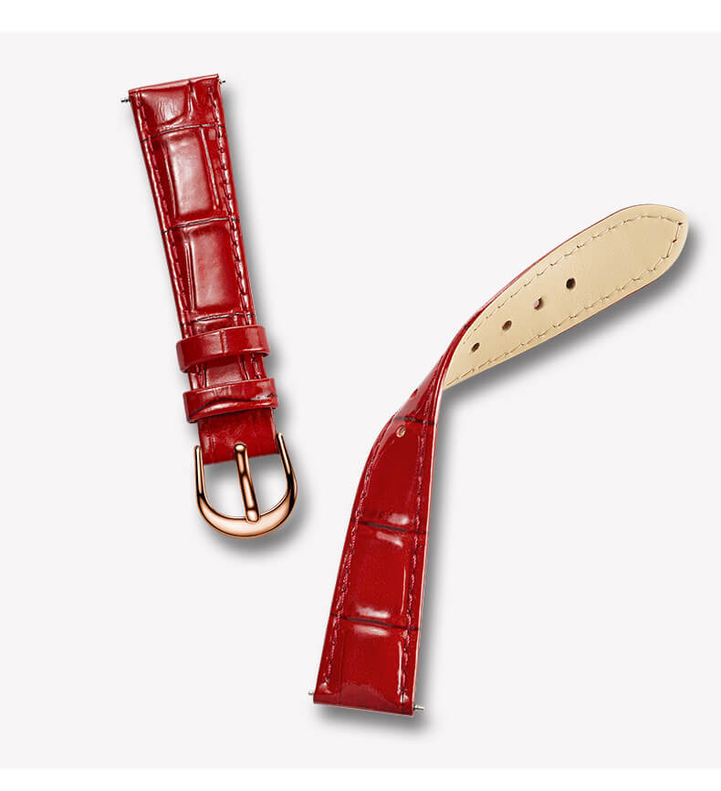 +Thiết kế hở tim phá cách kết hợp khéo léo với hoạ tiết hoa 4 cánh, viền mạ vàng PVD, cùng dây da màu đỏ thanh lịch sẽ khiến bạn nhận được sự "nể phục" vì gu chọn đồng hồ, cách chơi đồng hồ của mình !