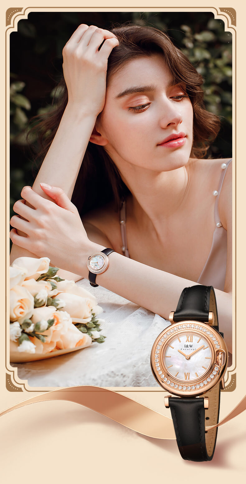 Đồng hồ đeo tay nữ hiệu JONAS & VERUS, mã số X00719-Q3.WWWLRD Dây da Italy mềm mại nổi bật hơn với viền mặt đính đá Swarovski,là một trong nhiều những chiếc đồng hồ Jonas &