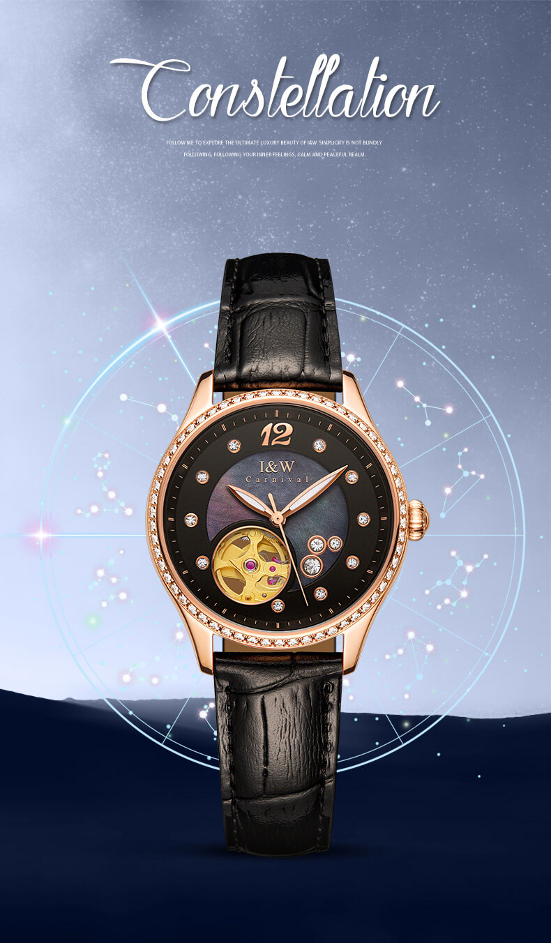 Thương hiệu I&W Carnival Quốc gia đăng ký thương hiệu Thụy Sỹ Mã sản phẩm 573L1 Giới tính Nữ Bảo hành Chính hãng 24 tháng Kiểu máy Japan Miyota Automatic Mov't (Máy cơ tự động