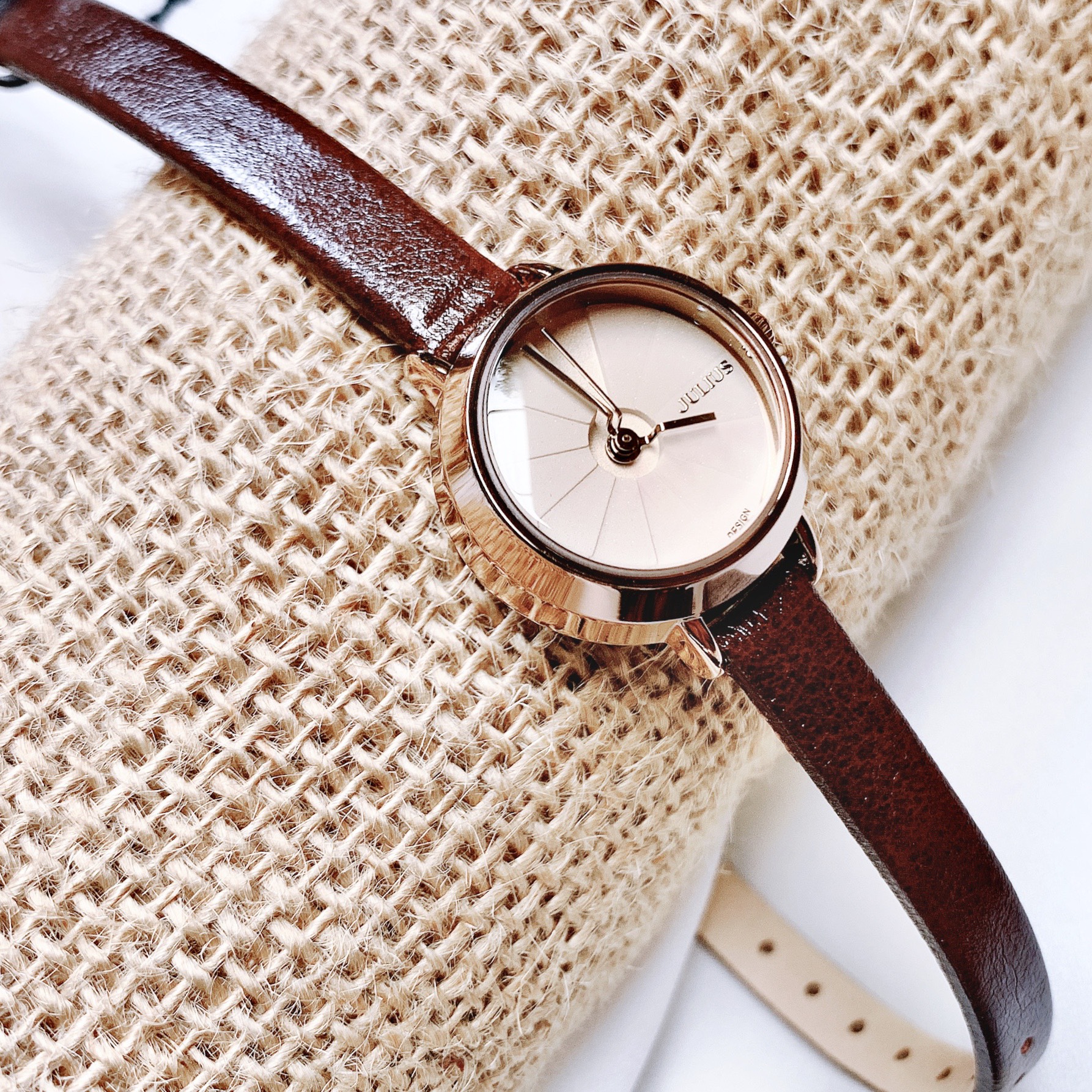 Đồng Hồ Nữ Julius Hàn Quốc JA979 Mặt Tròn Cá TÍnh Dây Da Màu Nâu