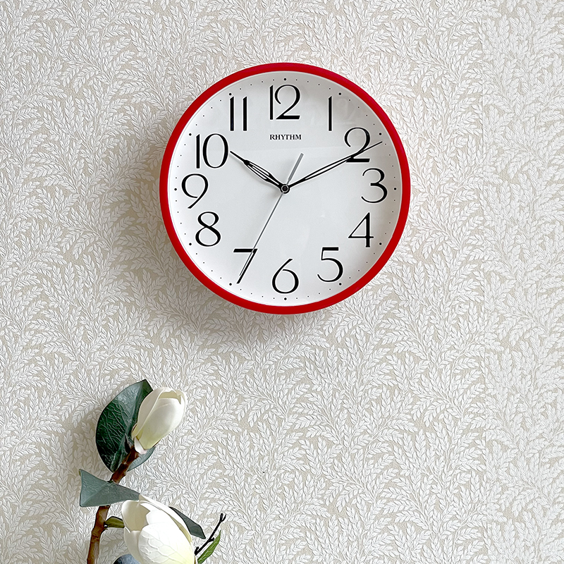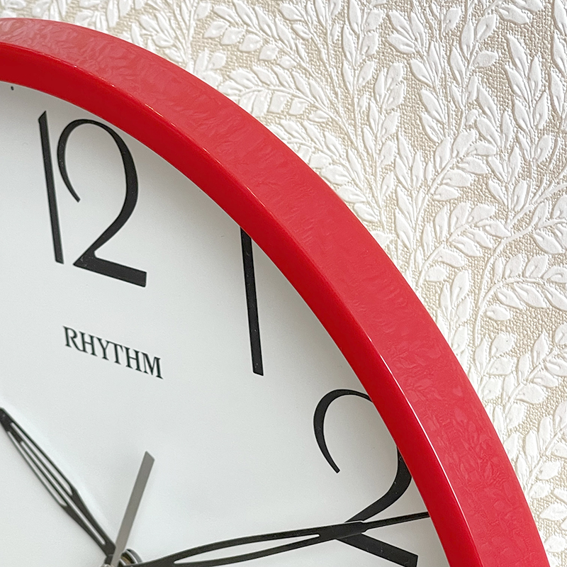 Mua tại TiktokĐồng hồ treo tường Rhythm CMG734NR01, dùng 1 pin tiểu (AA x 1), vỏ nhựa cao cấp màu đỏ, không bạc màu, Kích thước 31.2 x 5.0cm, trọng lượng 710g. Máy kim giật tiết kiệm