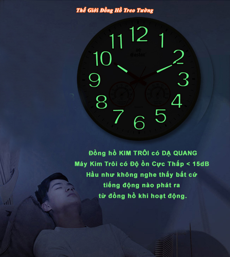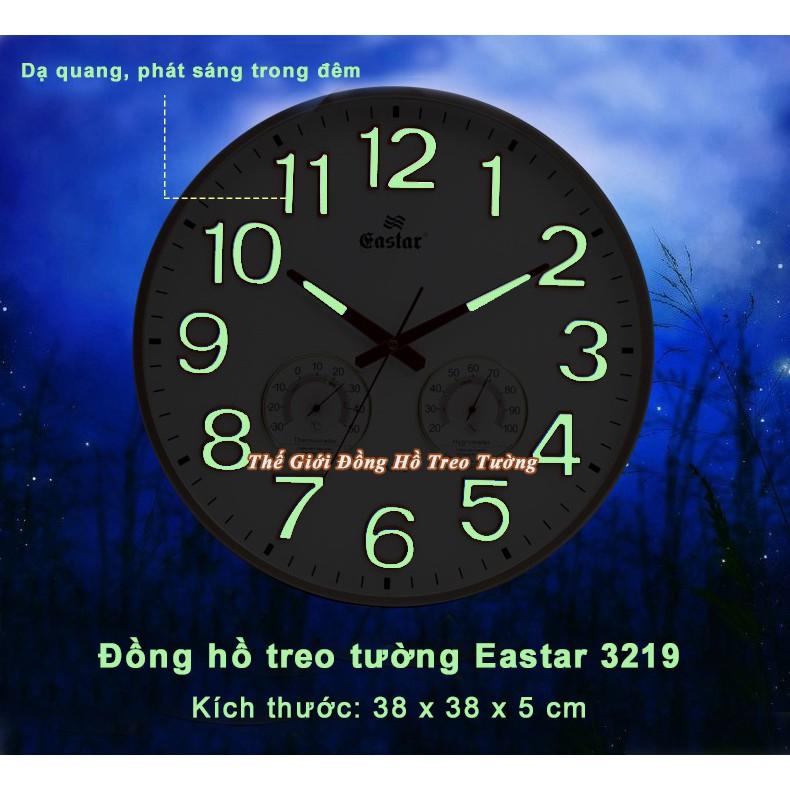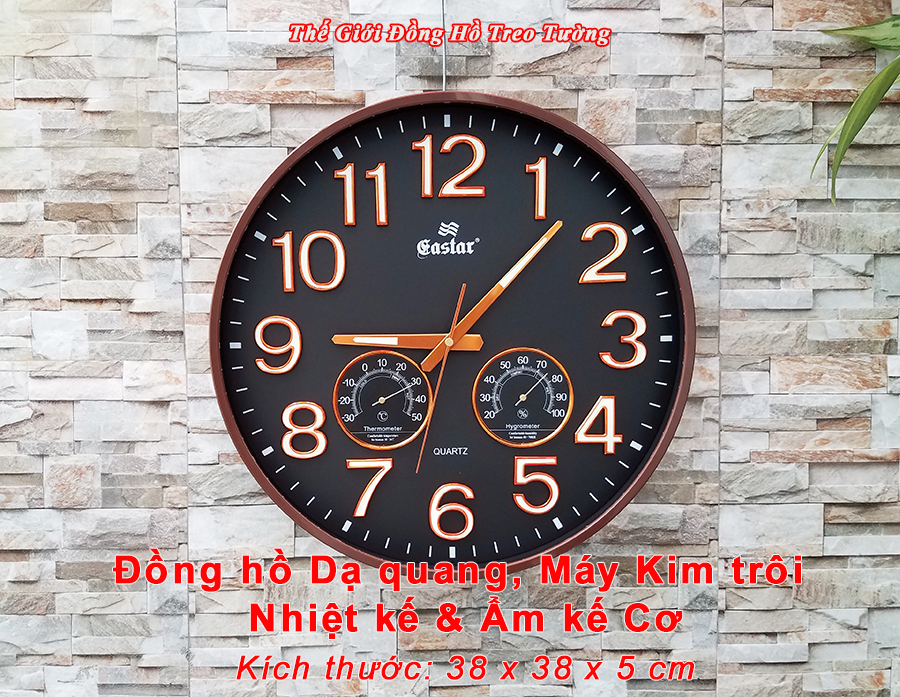 ✨Đồng Hồ Treo Tường DẠ QUANG Tròn Lớn (38cm) - NHIỆT ẨM KẾ Tự Động (Không Dùng Pin) - Máy KIM TRÔI EASTAR - Số Nổi 3D - Viền Siêu Mỏng - Tặng Pin Maxell - BH 1 Năm