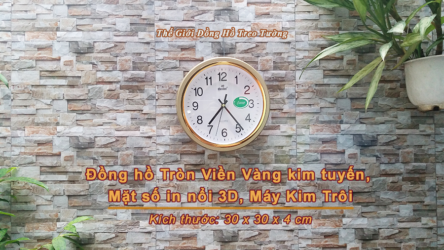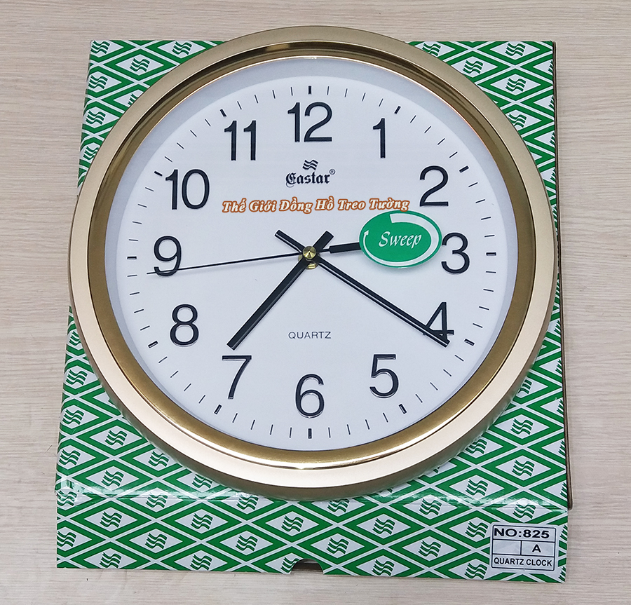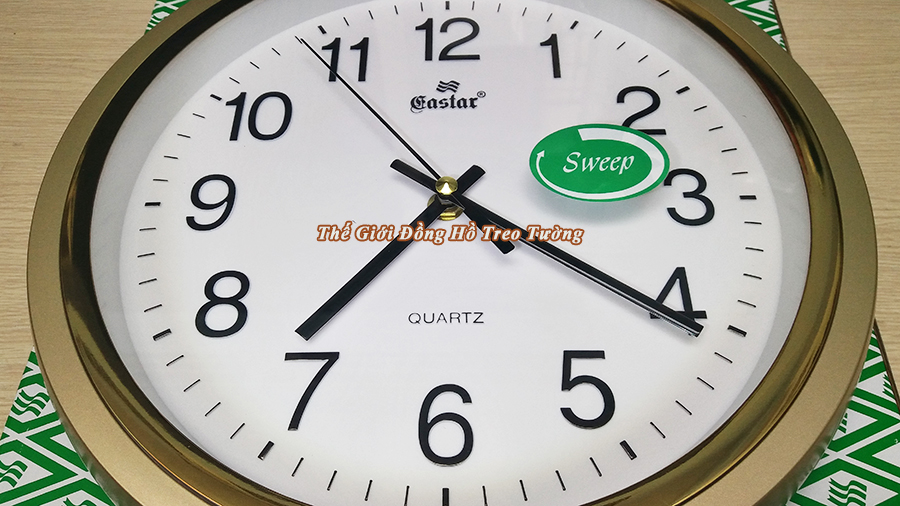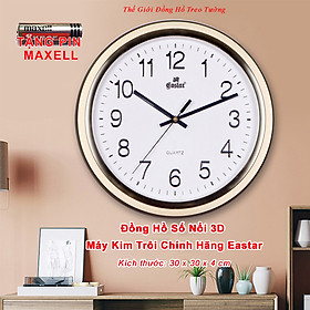 ✨Đồng Hồ Treo Tường KIM TRÔI EASTAR Cao Cấp - Mặt Tròn Viền Vàng Kim Tuyến - Mặt số in Nổi 3D - Máy Kim trôi – Tặng Pin Maxell