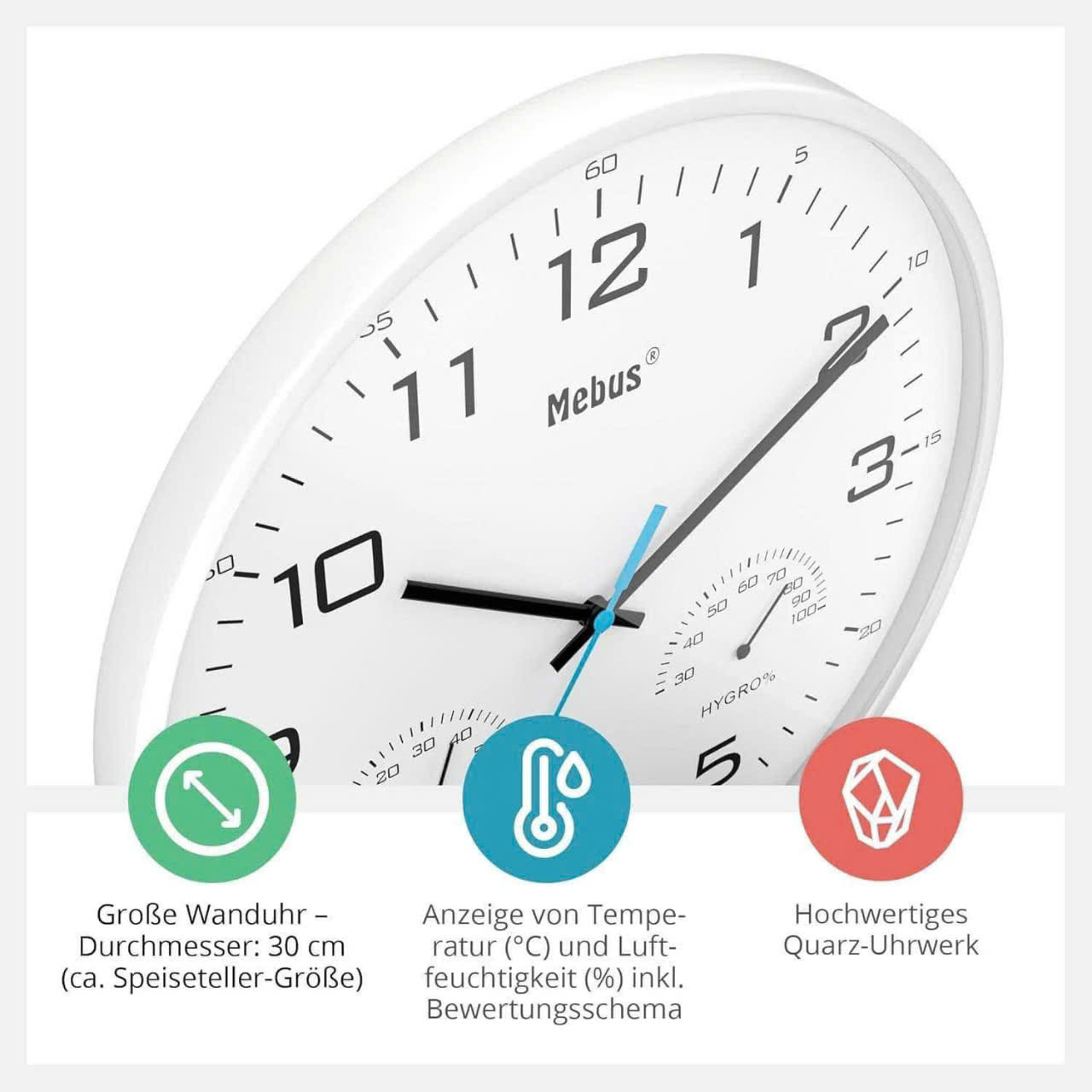 ✨ĐỒNG HỒ TREO TƯỜNG MEBUS NỘI ĐỊA ĐỨC size 30cm Hàng chính hãng