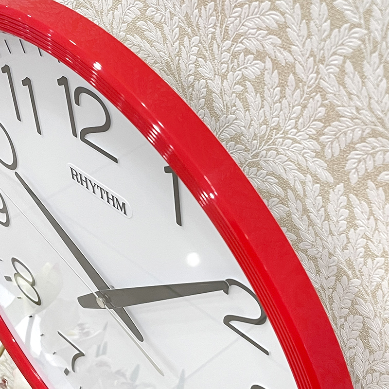 Mua tại TiktokĐồng hồ treo tường Rhythm CMG734NR01, dùng 1 pin tiểu (AA x 1), vỏ nhựa cao cấp màu đỏ, không bạc màu, Kích thước 31.2 x 5.0cm, trọng lượng 710g. Máy kim giật tiết kiệm