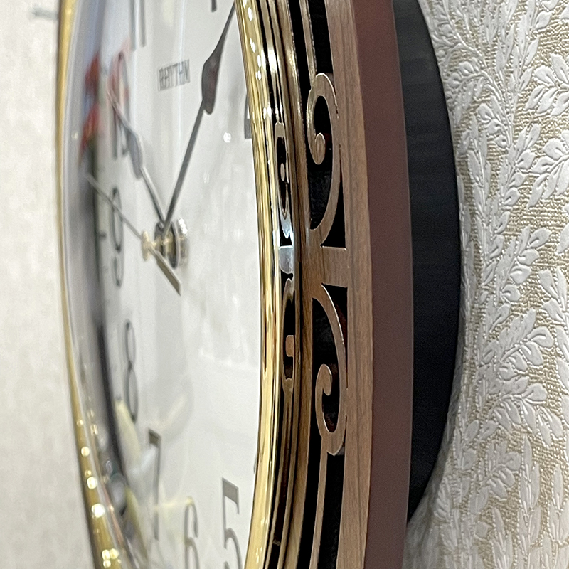 ✨Đồng hồ treo tường Nhật Bản Rhythm CMP542NR06 Kt 28.5 x 38.0 x 5.5cm, 620g Vỏ gỗ. Dùng Pin.