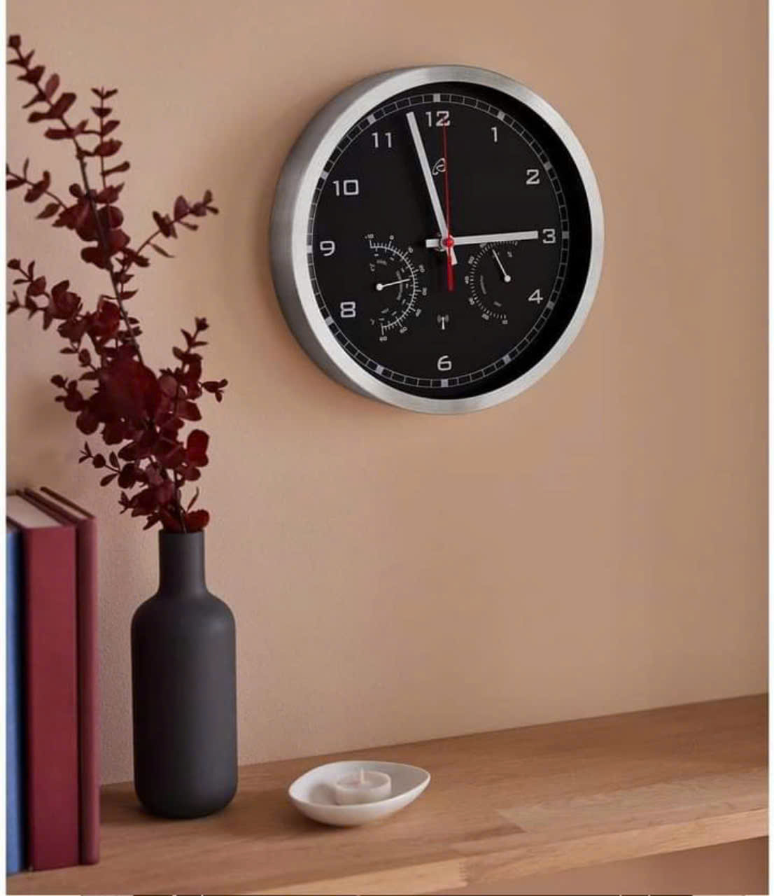 Mua tại TiktokĐồng hồ dòng phổ thông hiển thị thời gian, nhiệt độ và độ ẩm Hiển thị nhiệt độ với thang đo ° C Nhiệt kế ở vị trí 7 giờ , thang đo: -20°C đến 50°C Máy đo độ ẩm ở vị trí 5 giờ thang đo: 10% đến 100% Mặt số lớn, rõ ràng Sử dụng pin AA Kích thước Ø 25 x T 4 cm Vật liệu, khung nhựa, mặt kính