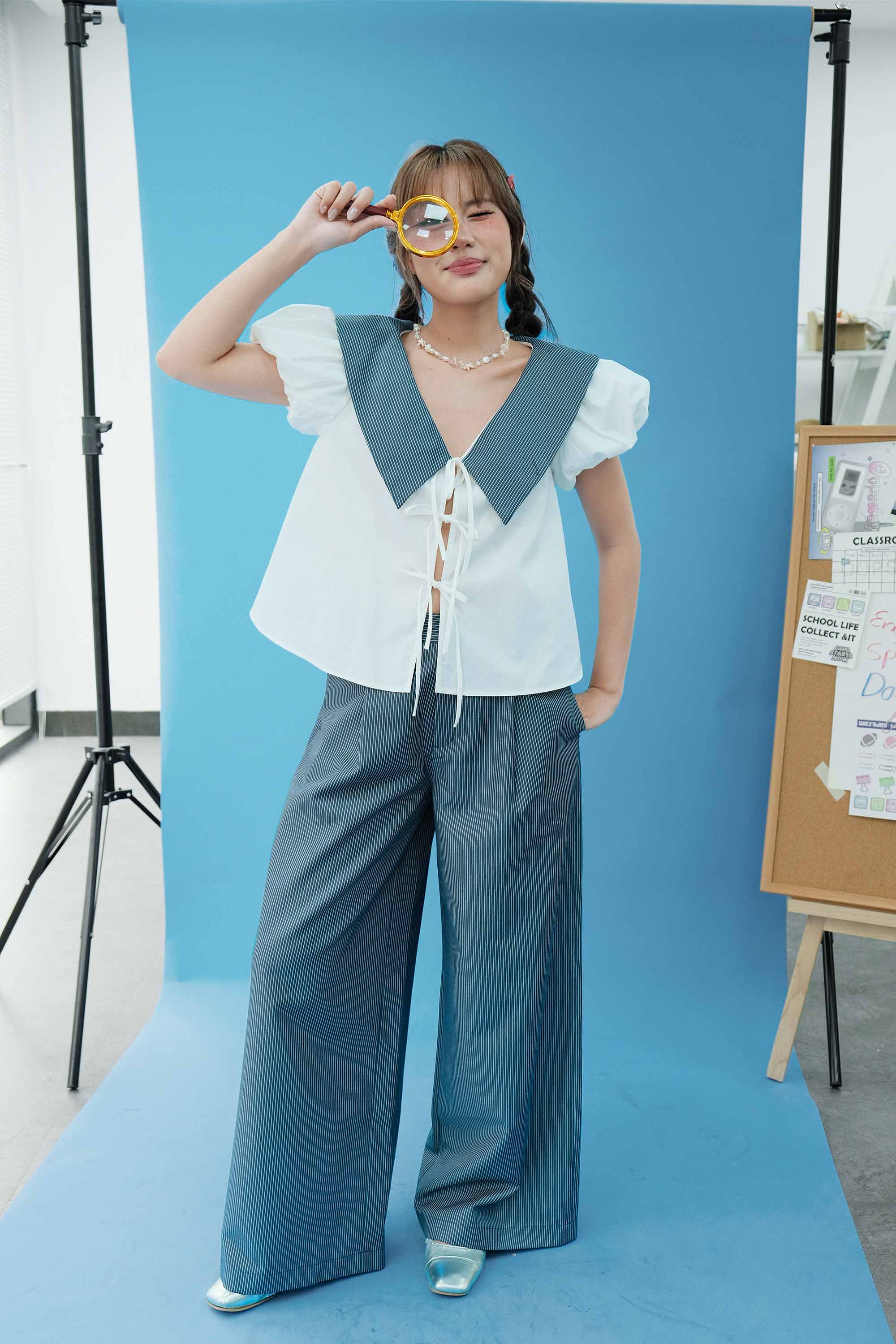 CHI TIẾT SẢN PHẨM ✿ Sản phẩm : Áo sơ mi tay ngắn viền ren dễ thương nữ tính cột nơ sau dễ phối đồ Jenni Miều Est.2013 ✿ Chất liệu : Xô Ren ✿