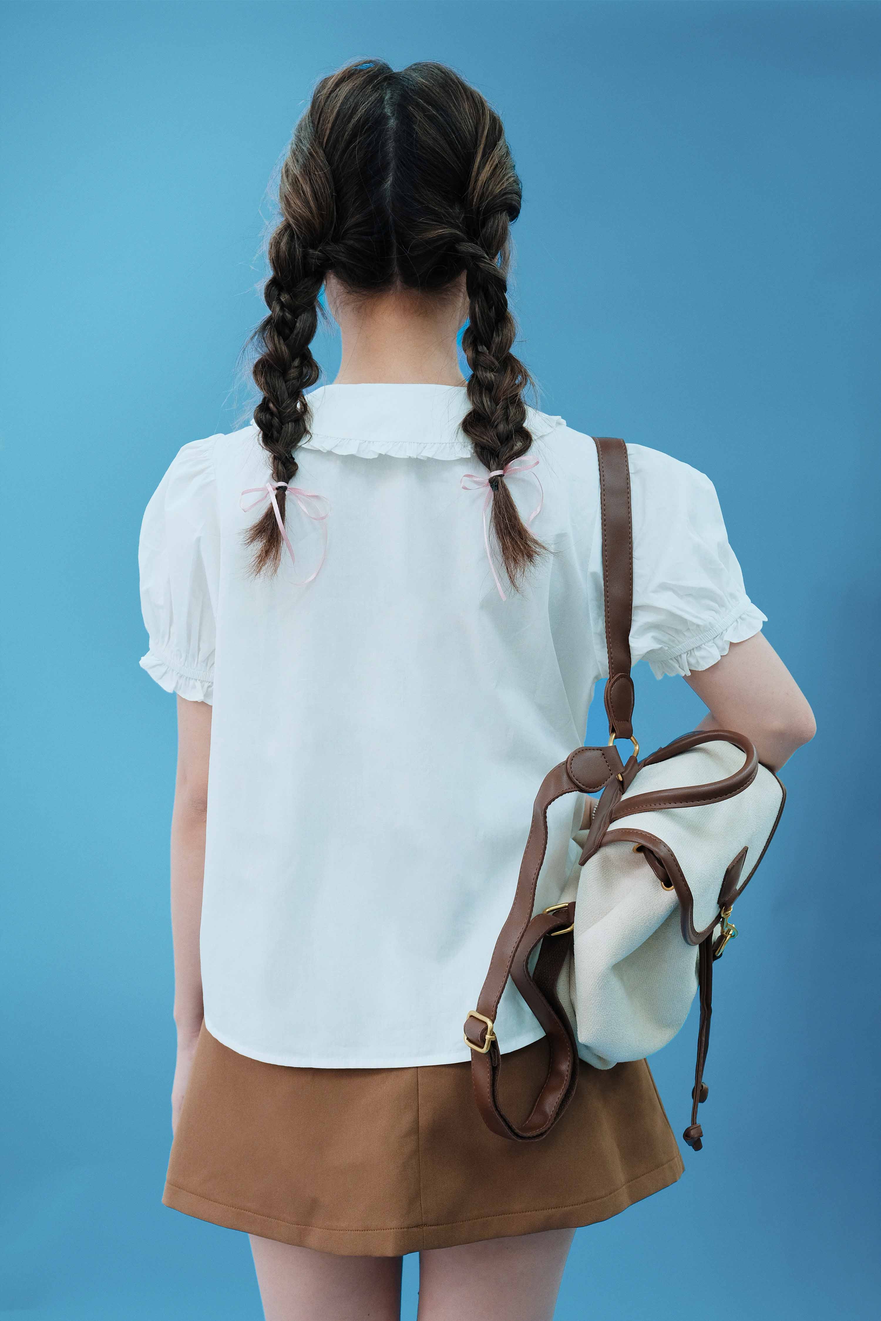 ✨DOTTIE - Áo sơ mi cổ sen tay phồng - Trắng kem - T1123