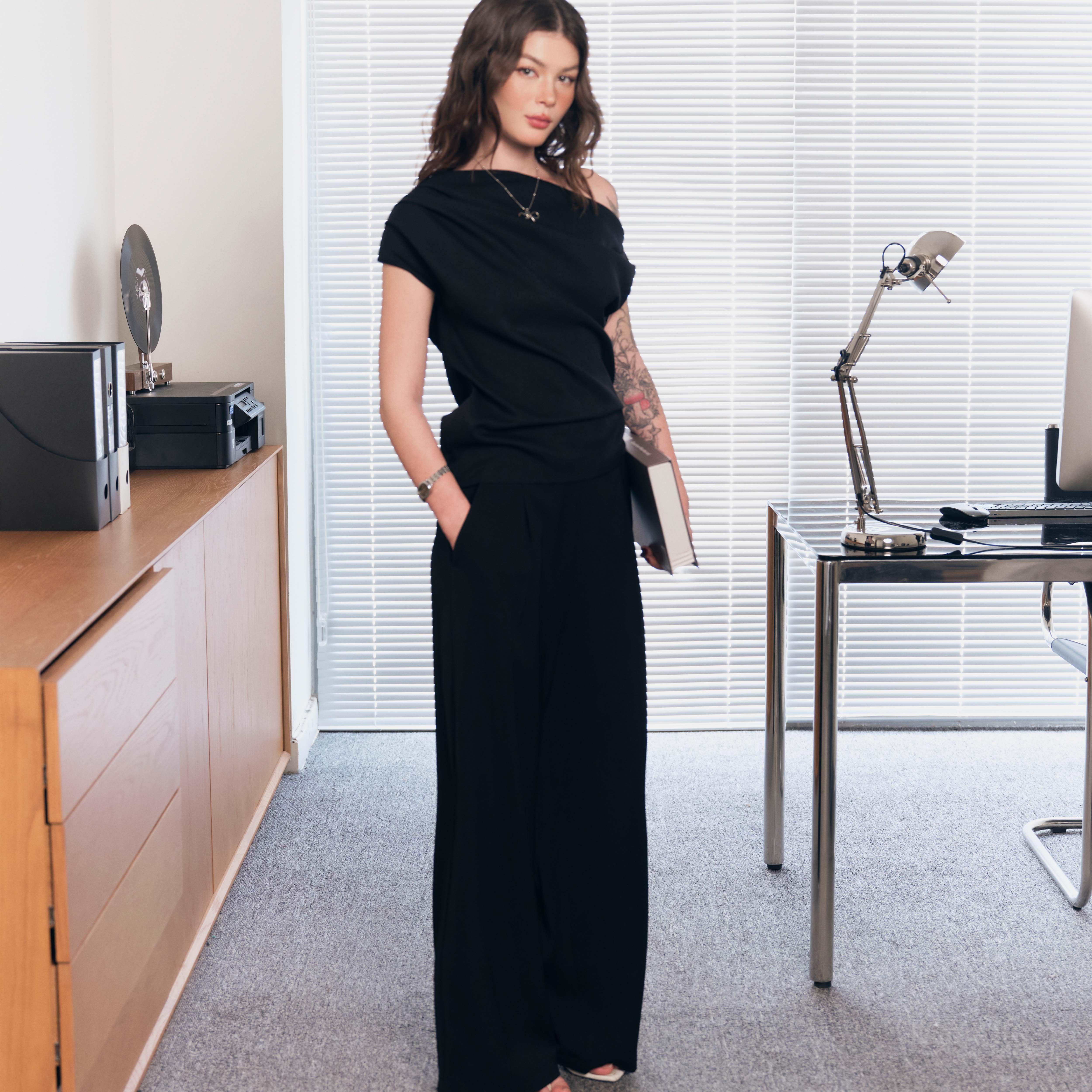 DOTTIE - Quần dài ống suông xếp ly - Đen - Q0387DOTTIE - Quần dài ống suông xếp ly - Đen - Q0387DOTTIE - Quần dài ống suông xếp ly - Đen - Q0387